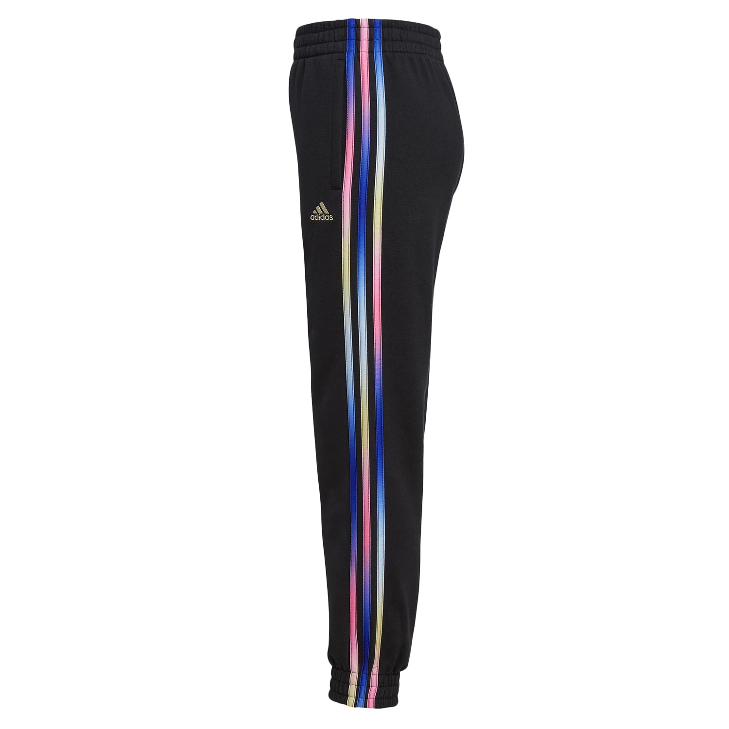 The AOP Stripe Fleece Joggers features encased elastic waistband and cuff, internal drawcord at waist, applied 3-stripes down the side seams with a seasonal print. An embroidered adidas brandmark on left hip.